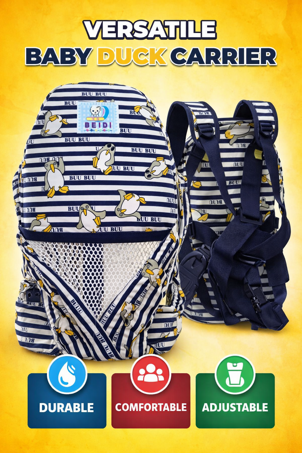 Dual side adjustment to fit the baby comfortably around the waist and leg.