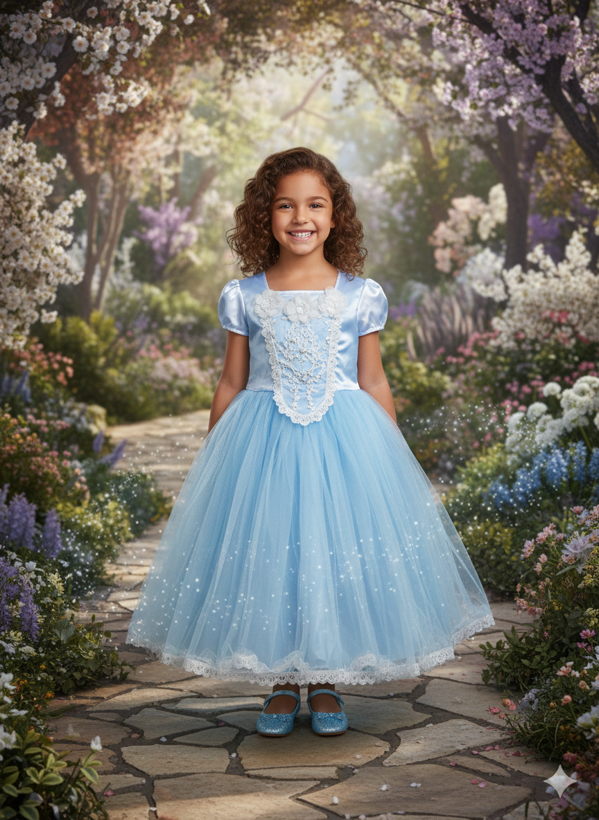 This luxurious outfit is designed to fulfill a little princess's dream and comes with several accessories