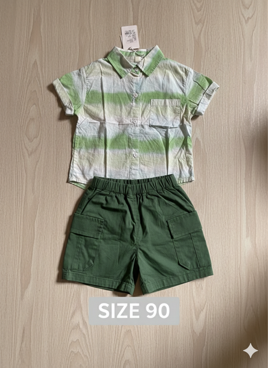 Green and white striped shirt and matching cargo short