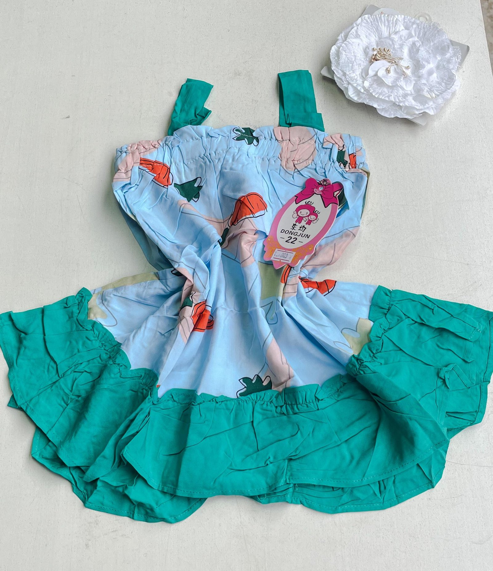 Sleeveless Strap Baby Princess Print Girls Outfit Toddler Girls