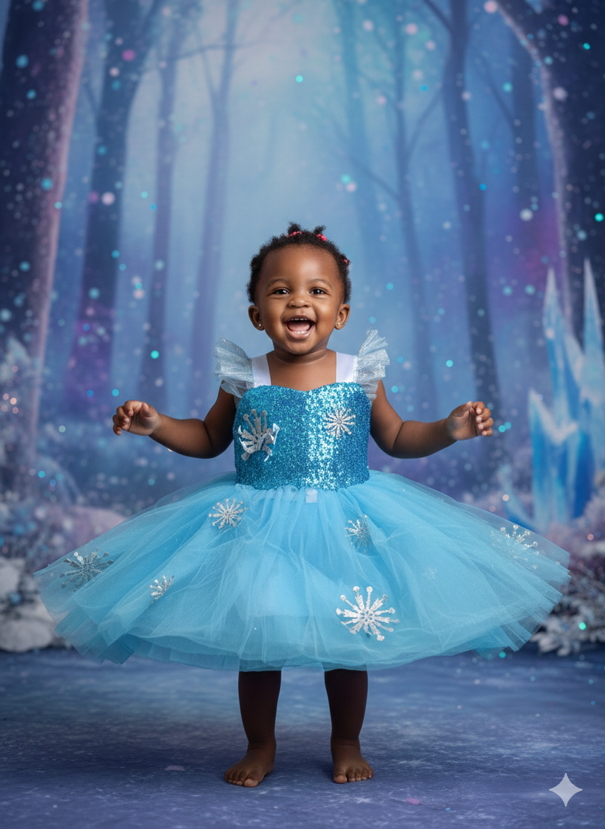 This is blue dress frozen style for baby princess