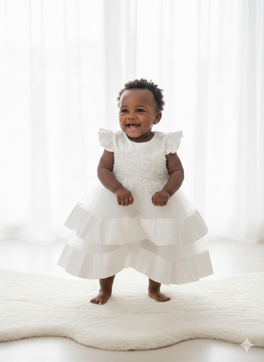 Baptism Dresses for Baby Girls Kids Flying Sleeves Princess Tulle Tutu Bridesmaid Wedding Christening First Communion Evening Prom Gown Outfit