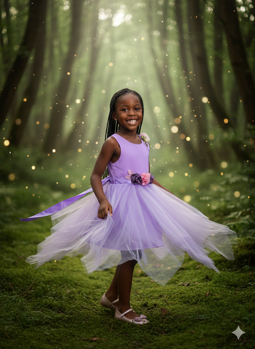 This Whimsical Lavender Tulle Party Gown is a dream come true for any special occasion. It combines a sophisticated silhouette with fairytale-inspired details, making it a standout choice for birthdays, weddings, or garden parties.