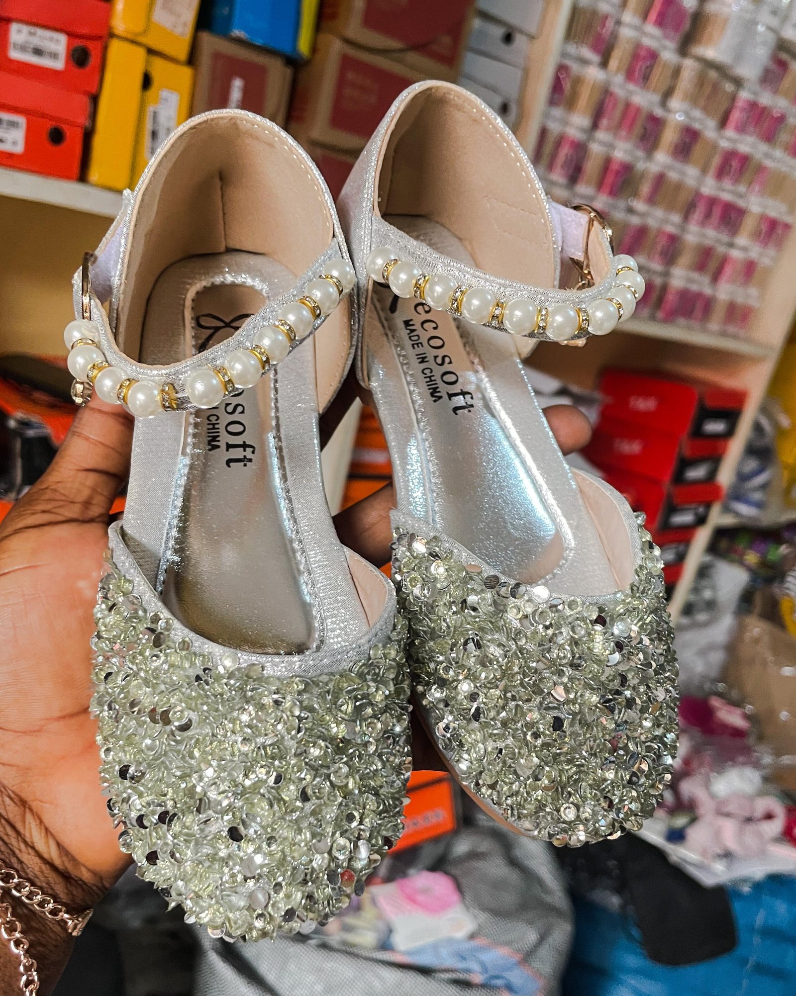Silver sequin and faux pearl flat sandals